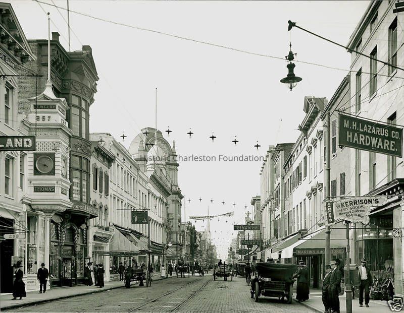 a: Looking north on King Street, 250 block near Hasell Street, ca. 1919, both sides of the street in view. Wonderland Theater (partially visible) and 257 King in left foreground; Lazarus Hardware (254 King) in right foreground. B&W.