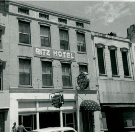 Two B&W photographs of buildings on the east side of King Street, both demolished for the construction of Charleston Place: