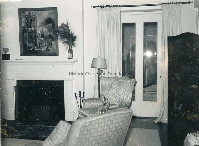 a: Room with fireplace and door. Written on back: "21¼ Legare, ground floor, Dr. and Mrs. J. Neil Marshall."