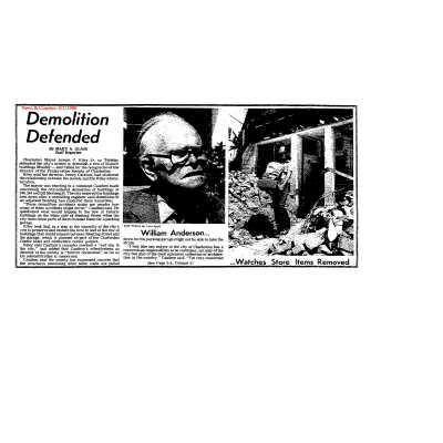 Notes: See newspaper articles on Media tab about the restaurant opening, reminiscences, and its demolition.Created By