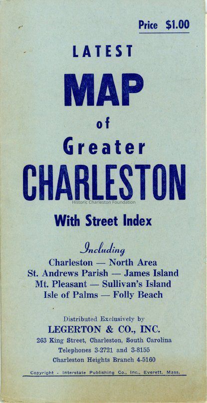Notes: Date estimated by entry in Catalog of Copyright Entries, Maps and Atlases, Jan.-June 1954, https://ia700708.us.archive.org/3/items/catalogofcopyrig386libr/catalogofcopyrig386libr_bw.pdf) and the presence certain points of interest, e.g., Charleston Museum, Argyle Hotel, Charleston Hotel, Sergeant Jasper Apartments, etc.Created By