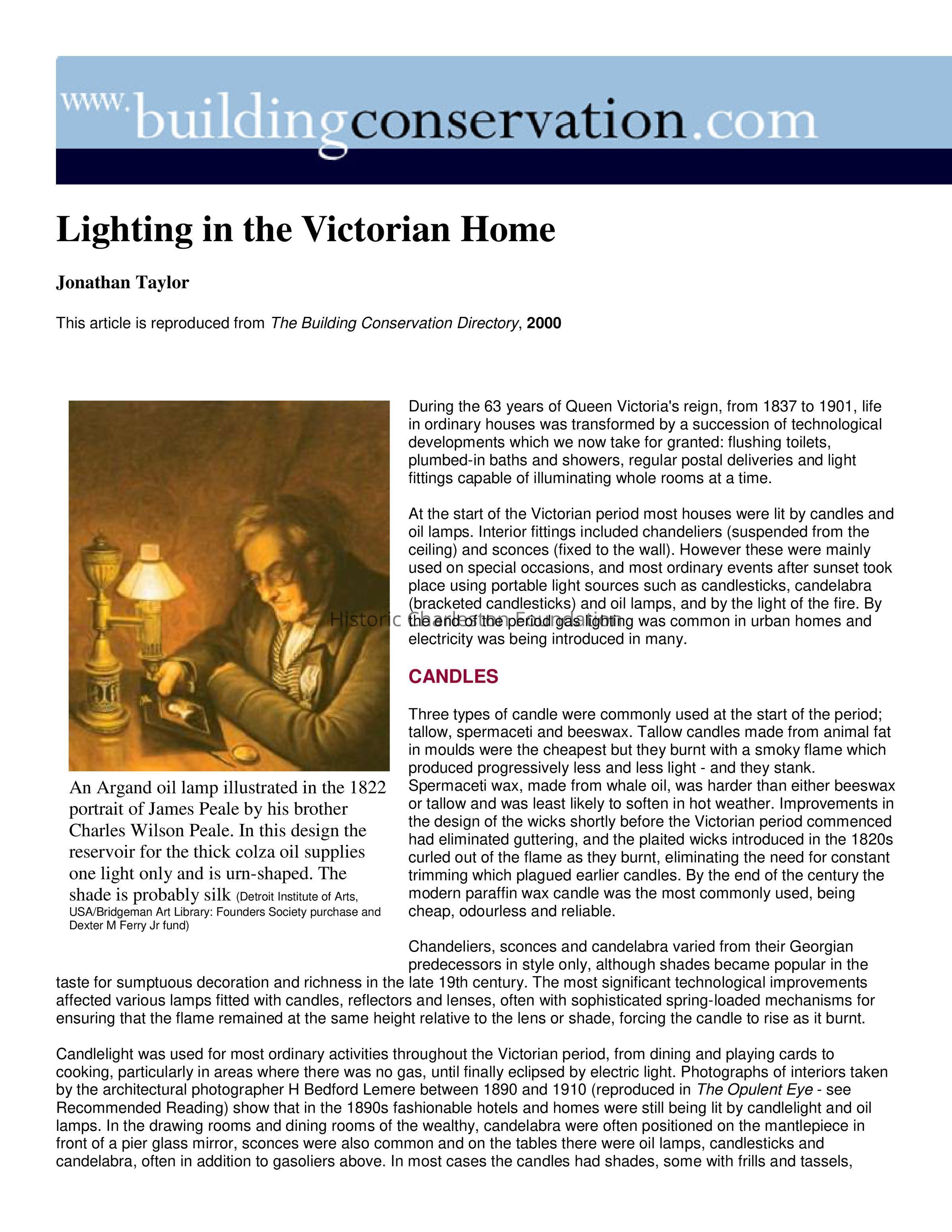 b: "Lighting in the Victorian Home." Discusses candles, oil lamps, gas, and electric lighting. (Article reproduced from The Building Conservation Directory, 2000.)