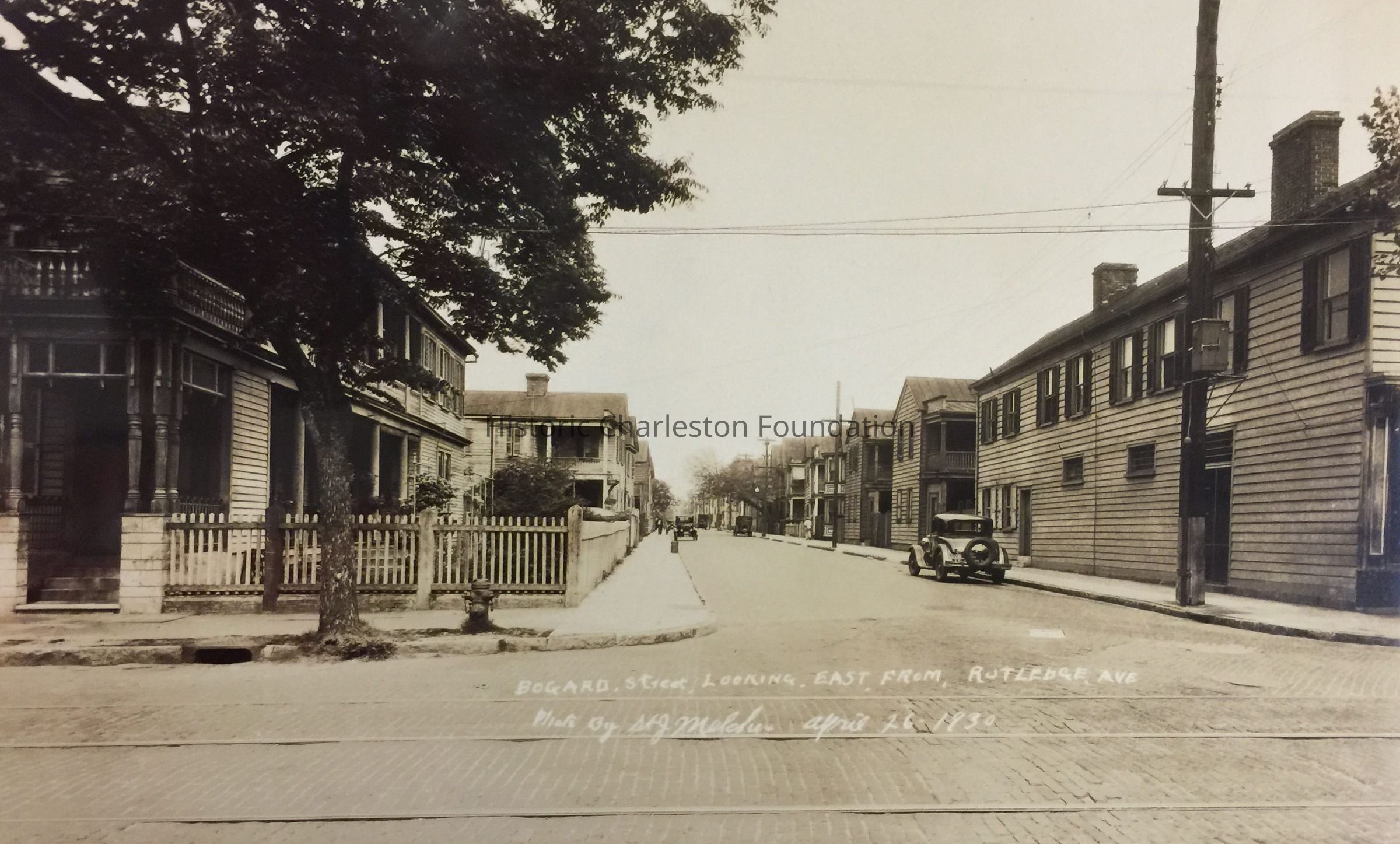 B&W photograph (scan) of Bogard Street looking east from the corner of Rutledge Avenue. Photo is captioned: "Bogard Street Looking East from Rutledge Ave. Photo by St. J. Melcher. April 26, 1930."