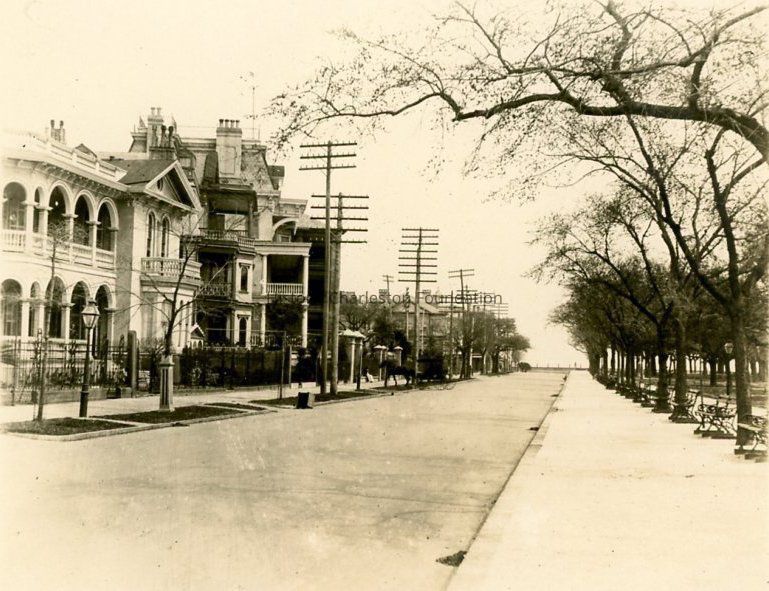 B&W photograph of the view looking east on South Battery from 26 South Battery (Col. John Algernon Sydney Ashe House).Photograph Details
