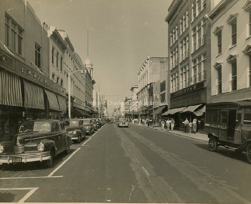West side buildings: 253 King, 255 King, 257 King, 259 King (Woolworths) and beyond to the Francis Marion Hotel.Collection