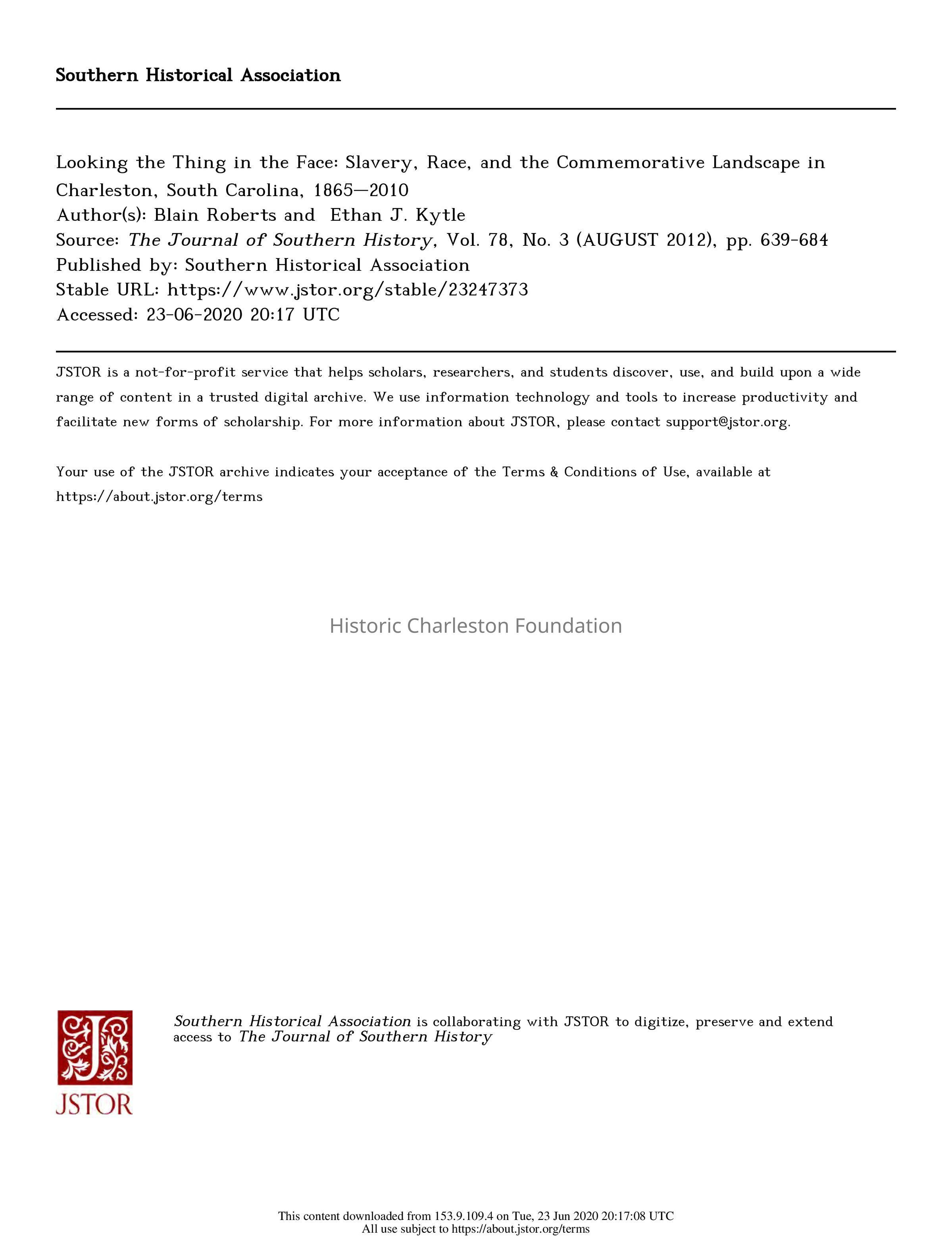 Looking the Thing in the Face: Slavery, Race, and the Commemorative Landscape in Charleston, South Carolina, 1865-2010Entry/Object ID