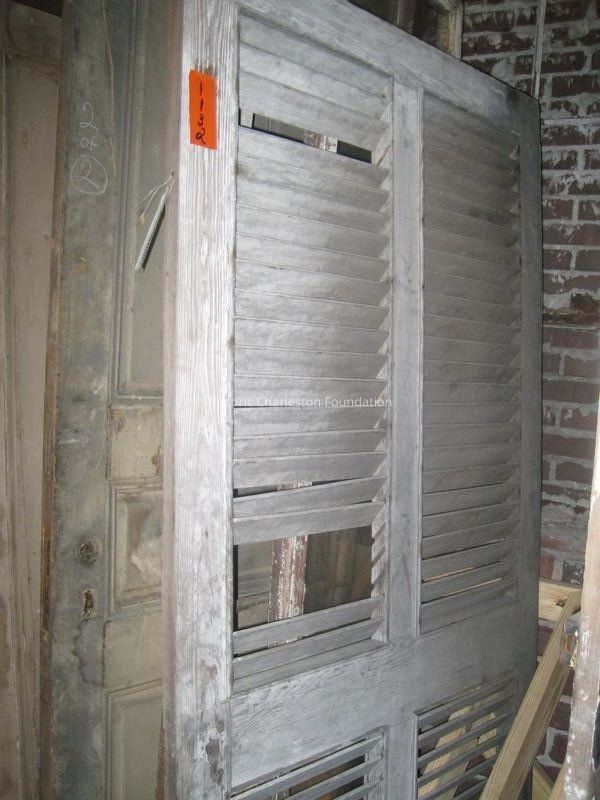 Louvered Door. 78"H x 40"W. Four panels. Missing slats.