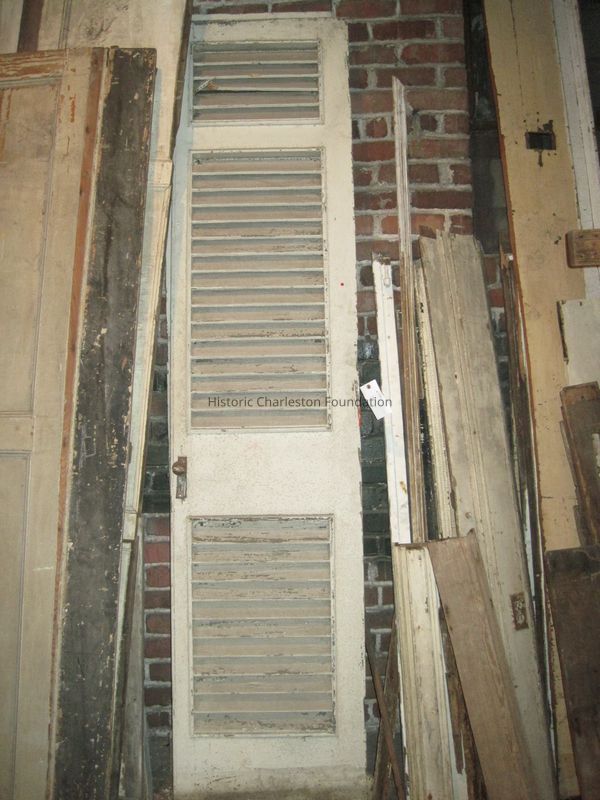 Louvered doors. 106.5"H x 24"W. Set of two halves. Includes hardware. Good condition.