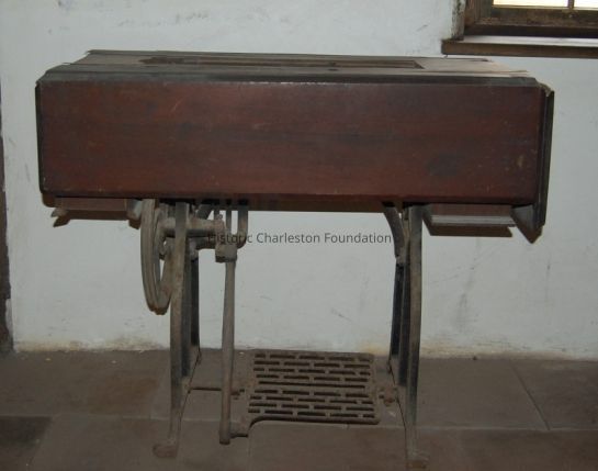 Sewing machine missing, veneer on top cracked and missing, iron rustingCreated By