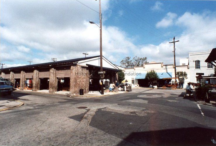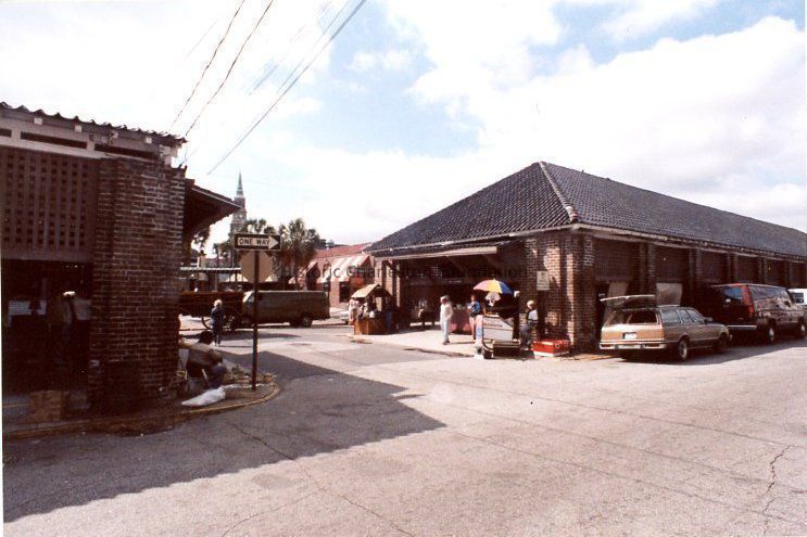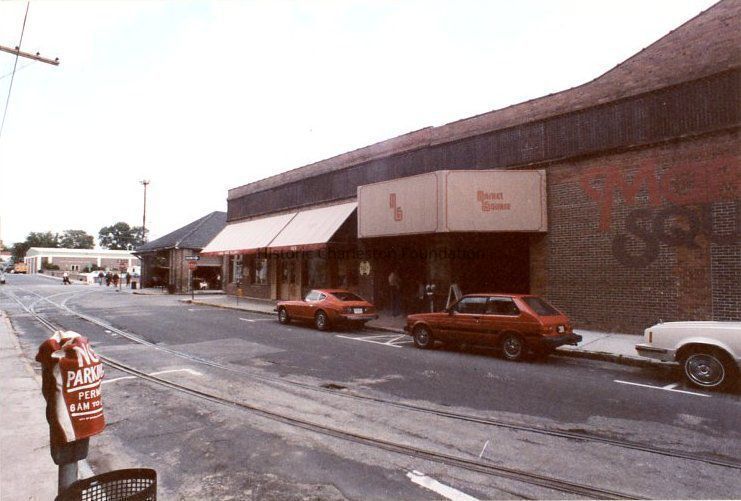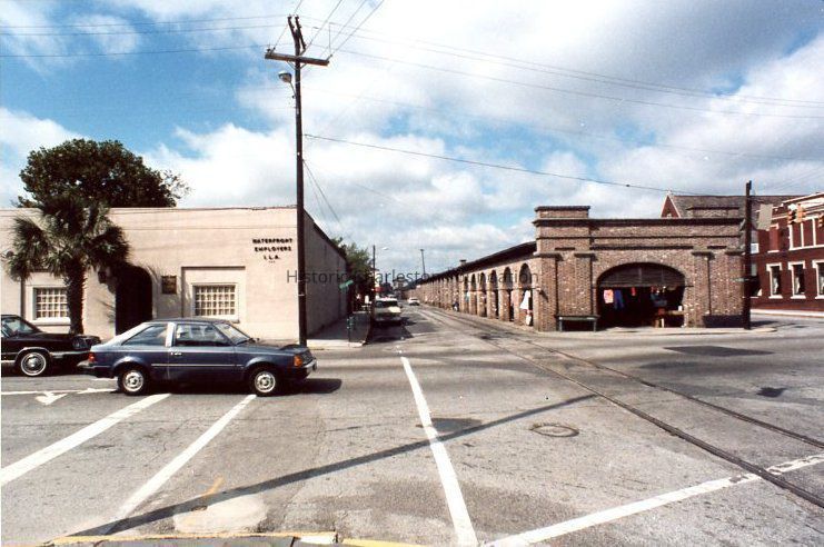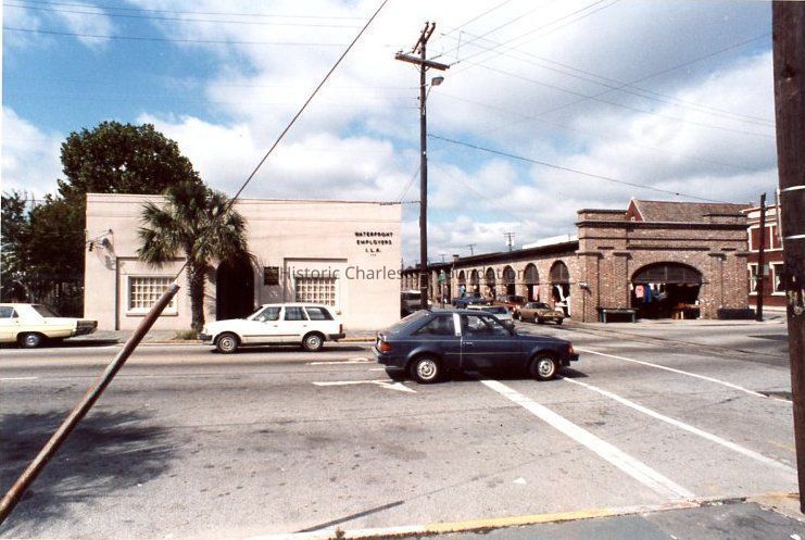 a-b: Intersection of Market Street and East Bay Street, featuring the east end of the Market sheds and the Waterfront Employers I.L.A. building (now gone).