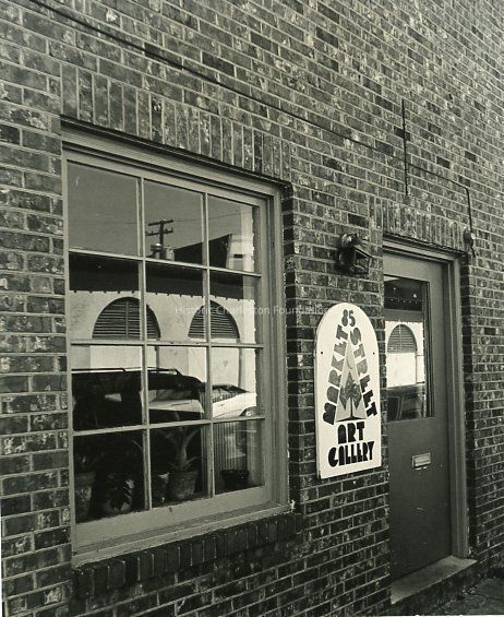 b: Close-up view of the exterior of the Market Street Art Gallery (85 South Market Street), featuring its window, sign, and door. A reflection of part of a Market Street shed can be seen in the window.Collection