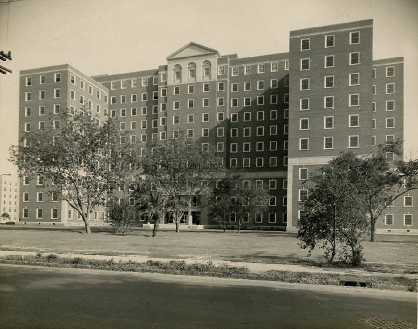 B&W photograph of the Medical College Hospital, Doughty Street elevation. The building was located at what was 16 Lucas Street. Now the Medical University of South Carolina (MUSC), 86 Jonathan Lucas Street.Collection