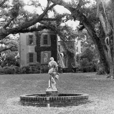 Two B&W photographs of Medway Plantation, views of the west elevation from across the grounds.