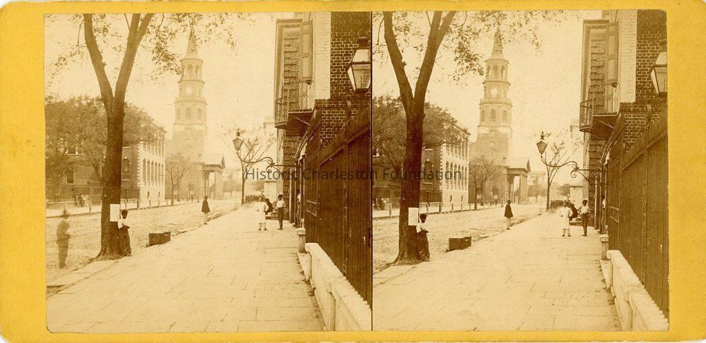 Streets, Meeting Street, Calhoun Street, Demolished buildings, lost buildings, Streets--South Carolina--Charleston, Charleston City Hall (S.C.), St. Michael's Episcopal Church (Charleston, S.C.), African American men, Charleston Orphan House, Lost architecture--South CarolinaCharleston, Pitt, William, Earl of Chatham, 1708-1778--Monuments