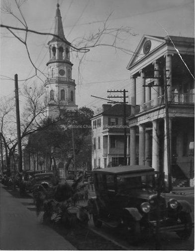 Streets, Meeting Street, Churches/Synagogues/Houses of Worship, Lowcountry Digital Library, Cars, Historic buildings--South Carolina--Charleston, Church buildings--South Carolina--Charleston, St. Michael's Episcopal Church (Charleston, S.C.), Streets--South Carolina--Charleston, Antique and classic cars, Charleston (S.C.)--Buildings, structures, etc.Location