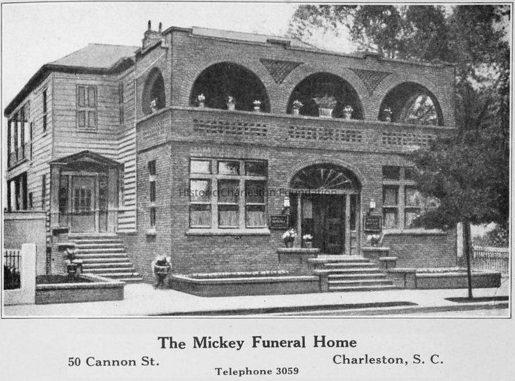 The Mickey Funeral Home was established in Charleston in 1894 by Edward Mickey. At his death, Edwin G. Harleston, brother of Edward Mickey's wife, Hannah Harleston Mickey, took over the firm until the two Mickey sons, Richard Harleston Mickey and Edward Crum Mickey became of age. In 1901, Edward Crum Mickey learned the trade and worked with Edwin G. Harleston at the funeral home. The company split in 1913; the Mickey Funeral Home re-established itself as an individual entity, run by the two brothers and their mother Hannah, while Edwin G. Harleston founded the Harleston Funeral Home. In the early 1930s, E.C. Mickey decided to build an expensive funeral parlor at 50 Cannon Street. The business failed and the firm shut down in 1933. (Source: Historical Note, Inventory of the Mickey Funeral Home Papers, Avery Research Center.)Collection