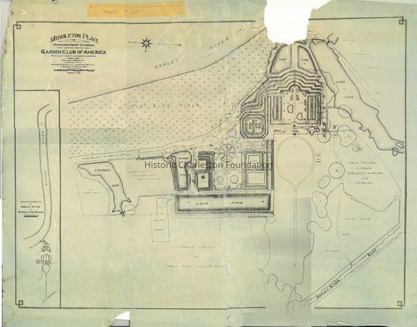 Title of drawing: Middleton Place, Dorchester County, S. Carolina, Surveyed for the Garden Club of America, Mrs. Luke Vincent Lockwood, Chairman