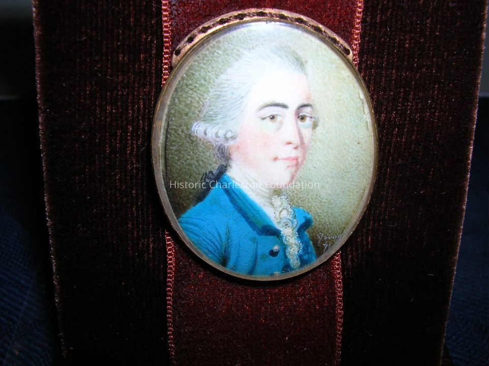 From 1765 to 1769, John Hopton (1748-1831), son of merchant William Hopton (d.1786) and Sarah Ward, clerked in the mercantile firm of notable statesman Henry Laurens. Following the completion of his apprenticeship, Laurens wrote Hopton letters of introduction and encouraged him to travel abroad to expand his business acumen. On July 31, 1770, Laurens wrote to Lisbon business associates John Stephenson and Josiah Holford that "now in prosecution of a plan which I recommended to him he [Hopton] is going to Europe, intends to visit Oporto, Lisbon, Cadiz, &ca., Amsterdam, Rotterdam, & Hamburg, London, Bristol, Liverpoole, & many of the Trading and manufacturing Cities & Towns in Great Britain." While in London, Hopton had this miniature painted by the now little-known artist Young, who is thought to have exhibited at the Society of Artists from 1767 to 1775. Despite the fact that Hopton caused great scandal when he misrepresented himself to Laurens's clients abroad, following his return to Charleston, Hopton launched his career as one of the city's most successful merchants. In 1782, Hopton evacuated with the British during the Revolutionary War, and he lived the remainder of his life in England while maintaining close familial and business ties to Charleston.