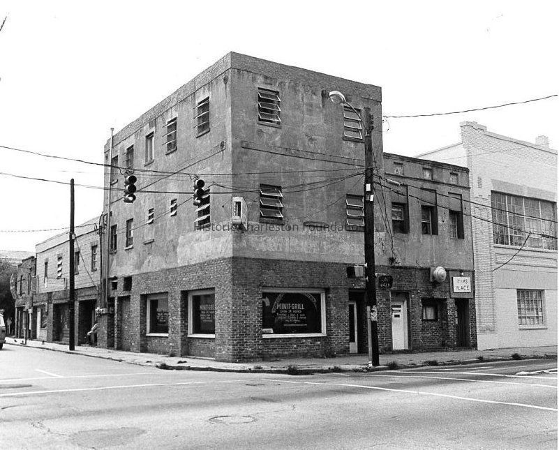a: View of the street corner (Meeting and Wentworth), the Minit Grill, and Jim's Place. Wentworth Street elevations also in view.