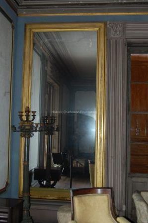 Mirror glass is in good condition on both sides and top but has serious powdering of the plaster coating along the bottom strip of framing. It is labeled along the right hand side of the glass with a paper strip bearing the name "Bowen" and is mounted to the wall surface of the East parlor at the northeast corner of the room.General Notes