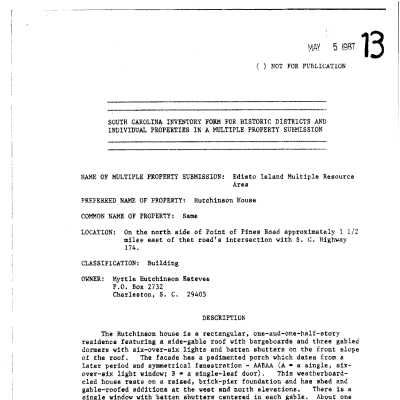 Edisto Island file includes National Register nomination form for "Edisto Island Multiple Resource Area.Container