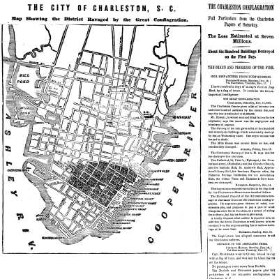 Per Katherine Pemberton: "[The] 1861 fire started in the vicinity of Hassell and East Bay Streets at Russell's Sash and Blind company. I think most historians believe it was accidental; it was an industrial site so makes sense that a fire could start accidentally, although the story that was circulated early on by the owner of the business was that it was the work of slaves who were messing around the area."Created By
