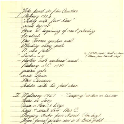 See Media Link for handwritten list of what is featured in the film; the list had been found with the canisters of original film.