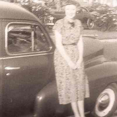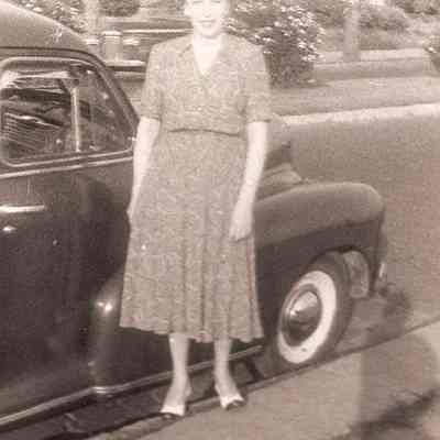 b-c: Woman standing in front of car in foreground. 98 Murray Boulevard in the background.Collection