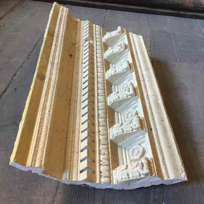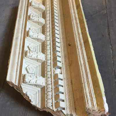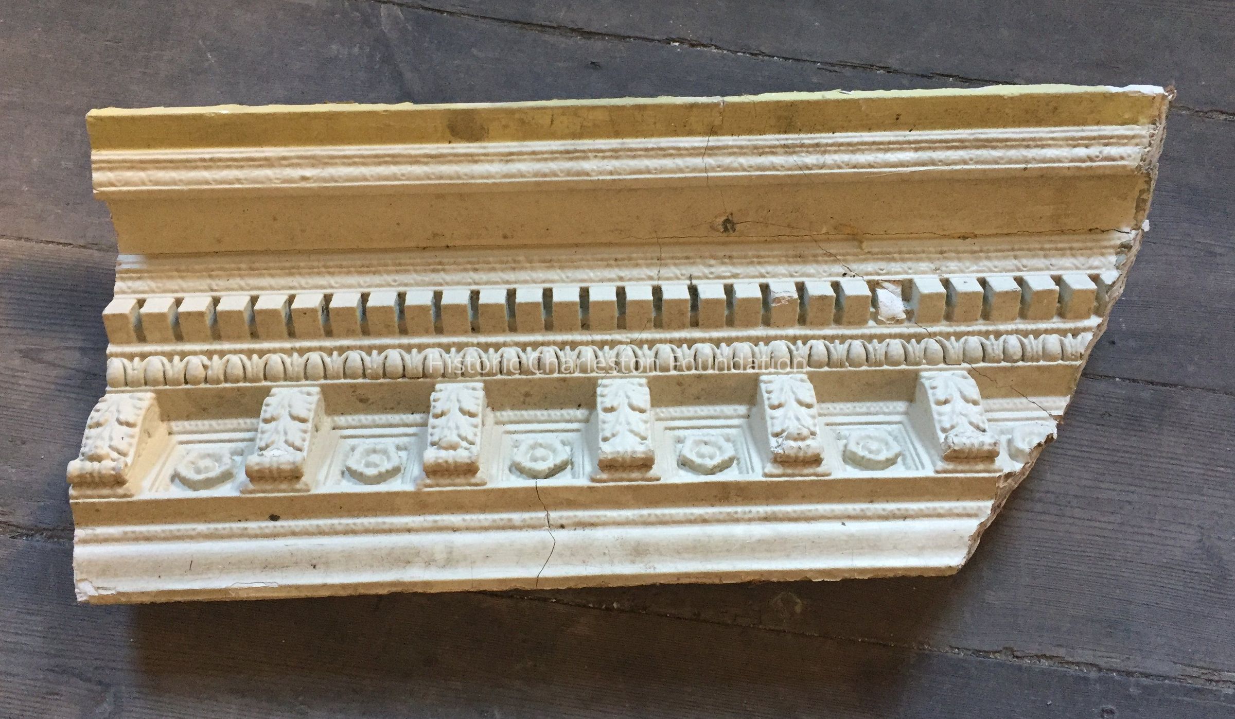 Original fragment or a replica of a cornice from the Nathaniel Russell House. (Original came down in 1947.) Has large cracks; dentil broken off.Collection