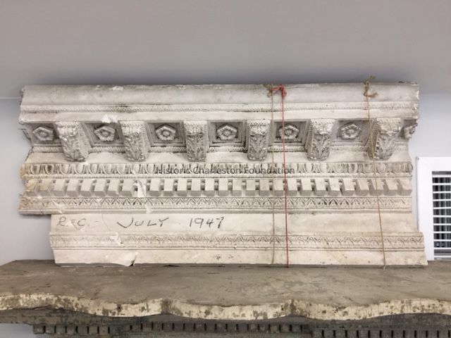 Original fragment or a replica of a cornice from the Nathaniel Russell House. (Original came down in 1947.) "REC. July 1947" written on front.
