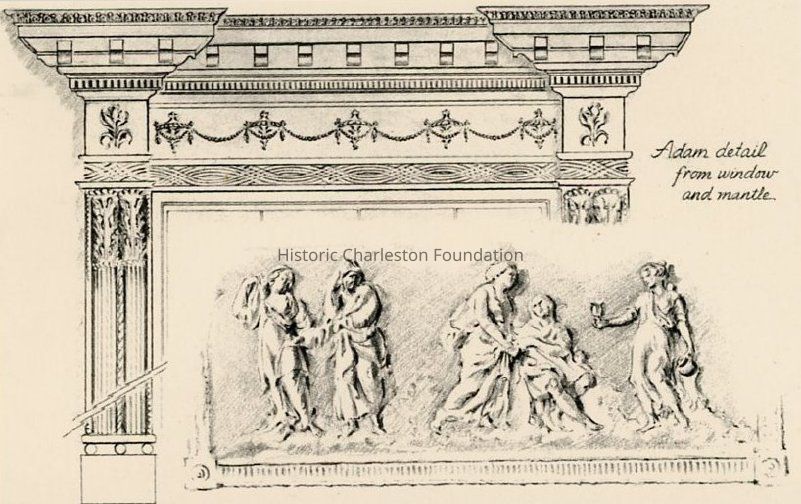 81: Adam details of the entablature above the tall windows of the drawing room and the mantel of the oval drawing room.Collection
