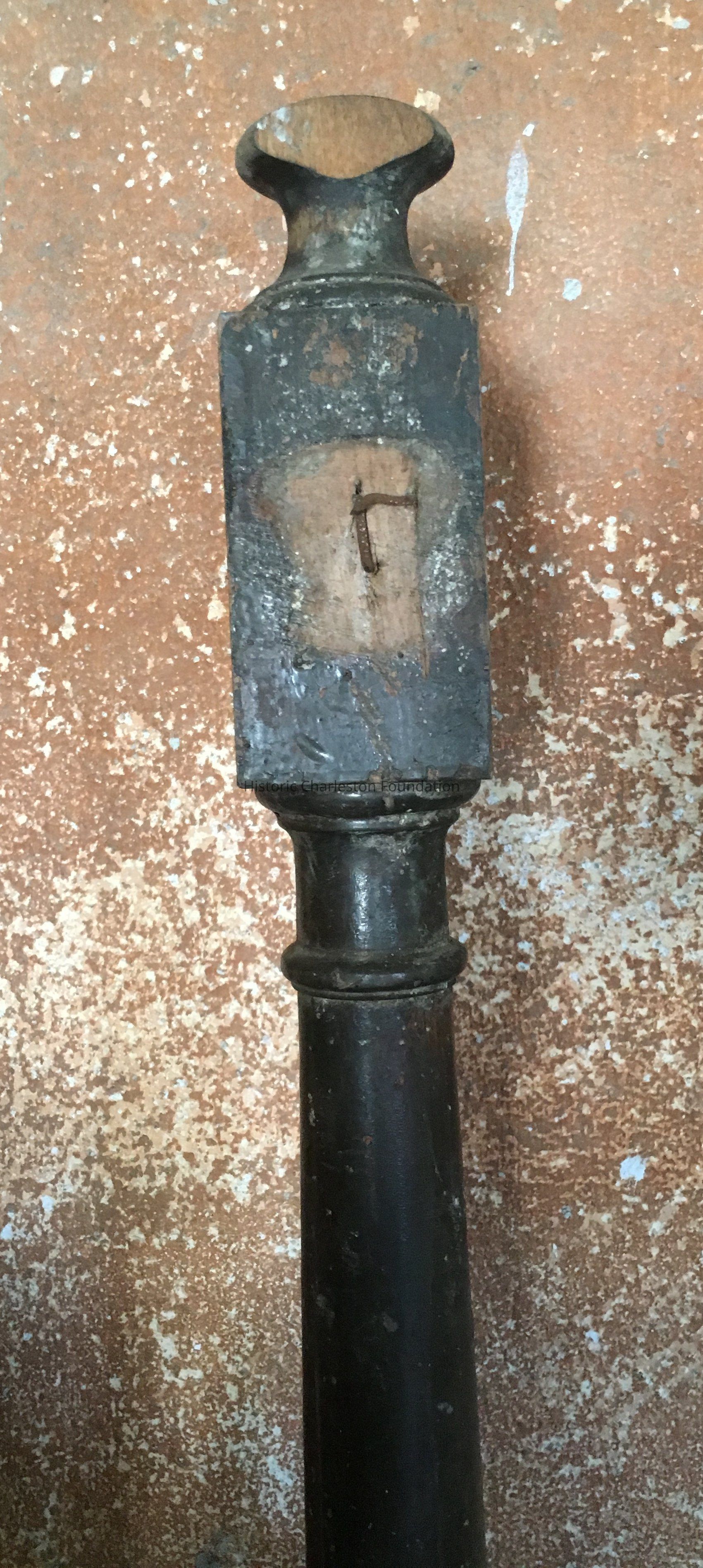 Wood (birch) newel post, ca. 1940-1960. Some nicks; missing finish at top.Collection