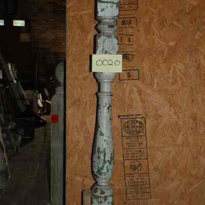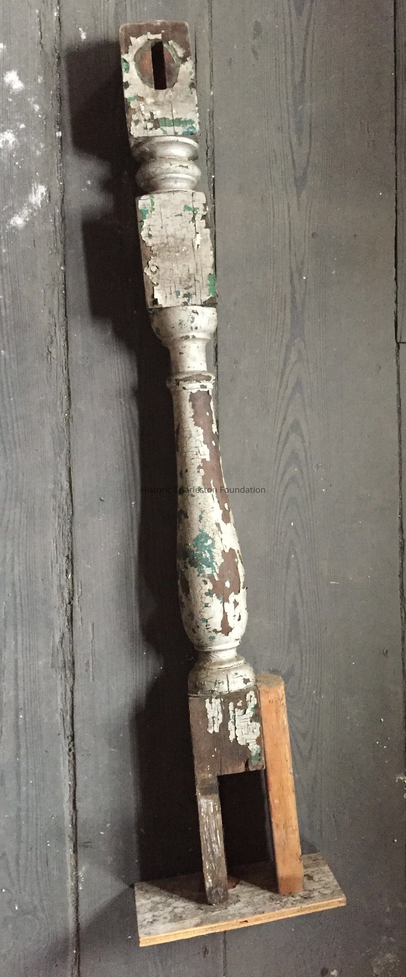 Pine newel post; painted, probably exterior piece. Classical Revival, ca. 1800-1860. Overall good condition except for cracking paint.Collection