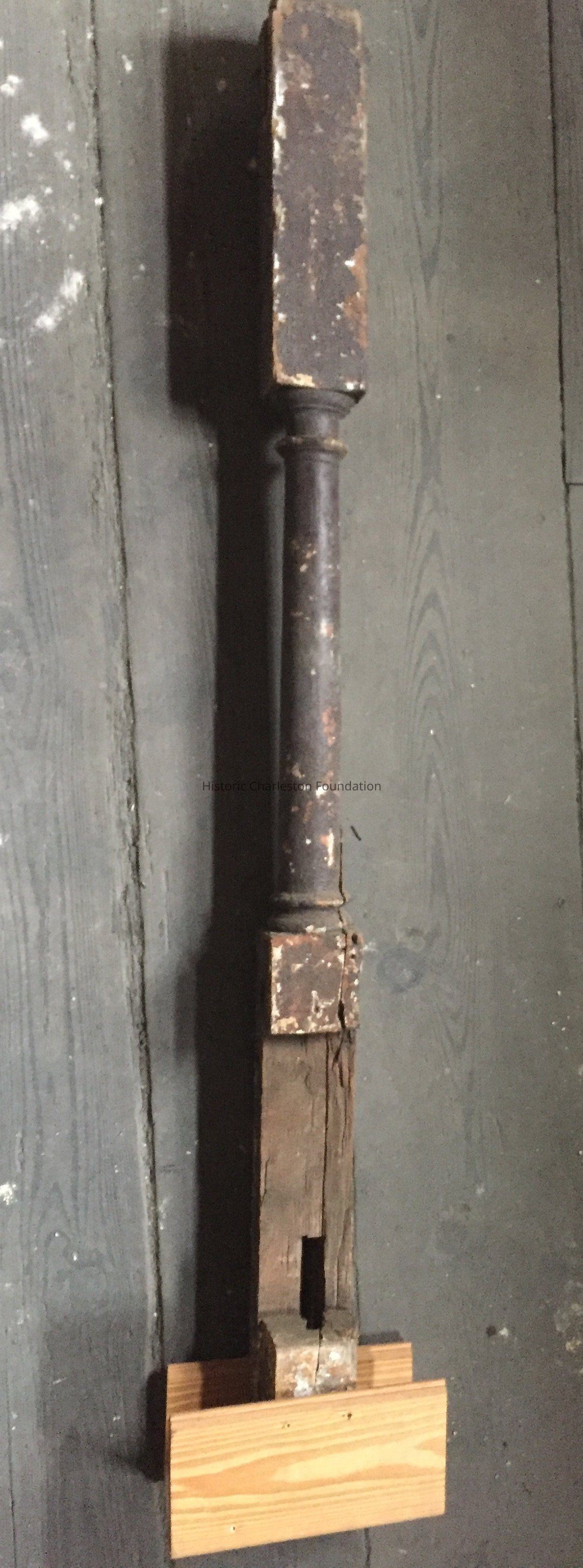 Wood newel post. Transitional (late Georgian), ca. 1790-1800. Some rotting and chipped paint with a few cracks.