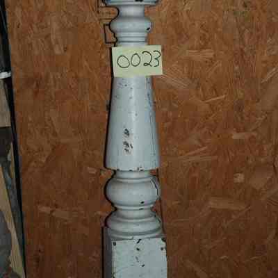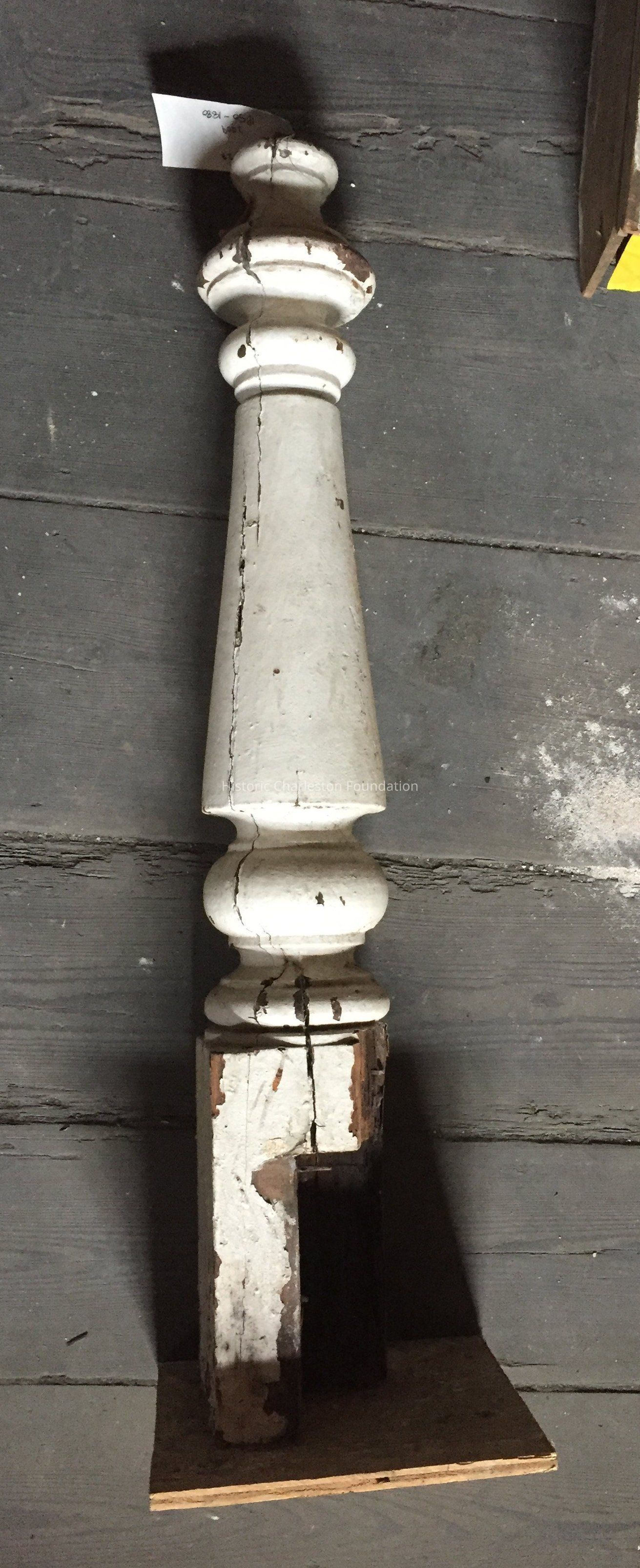 Pine newel post. Transitional Greek Revial to Victorian, ca. 1850-1880. Has large cracks and a chunk missing from back corner of base.
