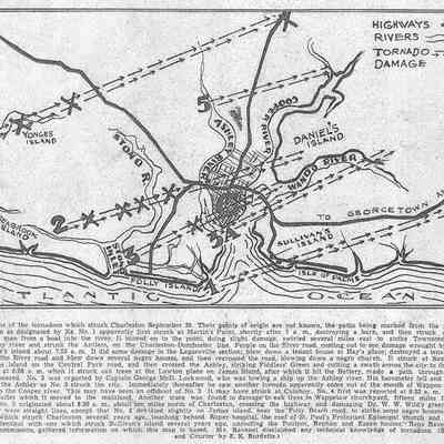 State Street, Church Street, Broad Street, Market Street, Charlotte Street, Meeting Street, King Street, South Battery, South Market Street, Murray Boulevard, Fludd Street, Hayne Street, Vendue Range, Fiddlers' Green, Tornadoes--South Carolina--Charleston, Tornado damage--South Carolina--Charleston, Charleston (S.C.)--Pictorial works, Charleston (S.C.)--Buildings, structures, etc.--Pictorial works, African American neighborhoods--South Carolina--Charleston--Pictorial works, Sullivans Island (S.C.)--Pictorial works, Natural disasters--South Carolina--Charleston, Washington Square Park (Charleston, S.C.), French Protestant Huguenot Church (Charleston, S.C.), Historic buildings--South Carolina--Charleston, Charleston (S.C.)--Aerial views
