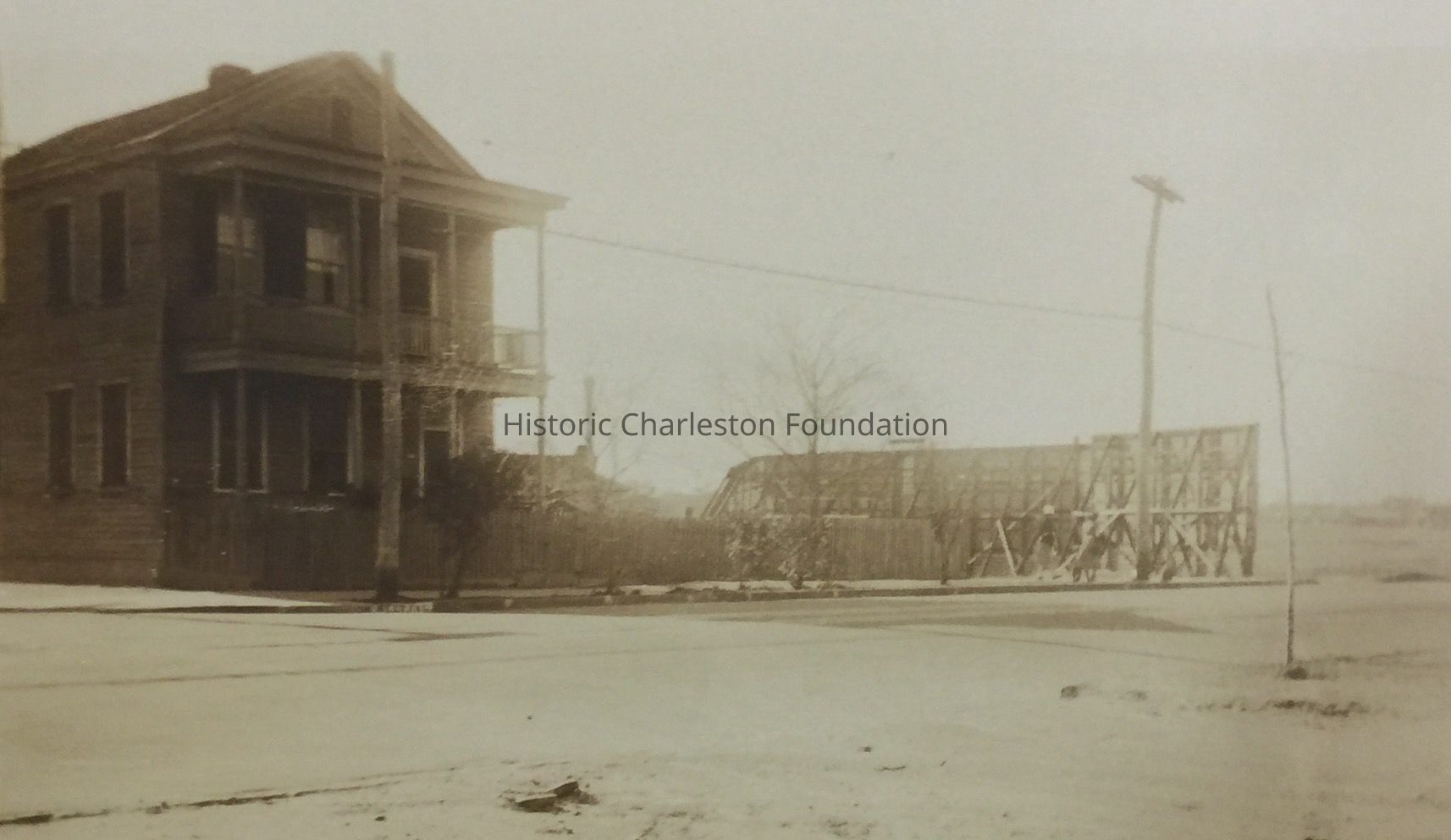 B&W photograph (scan) of the house that was located at the northwest corner of Meeting and Huger Streets.