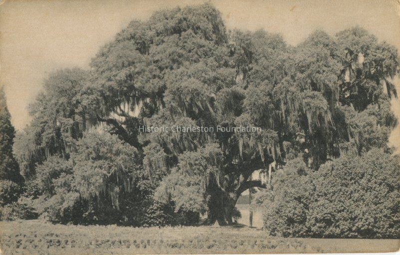 Photographic postcard (scan) featuring the grand oak tree at Middleton Place.Collection