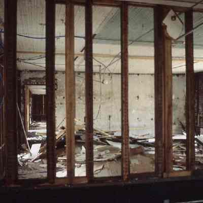 Sixteen color slides of the Old Citadel building during the extensive gutting in 1995-1996 for its reuse as a hotel. Three exterior views and thirteen interior views. The gutting exposed the structure's original interior brickwork seen in some of the slides. Slides of window frames and mantels like those removed by the developers are also seen in some of the slides.