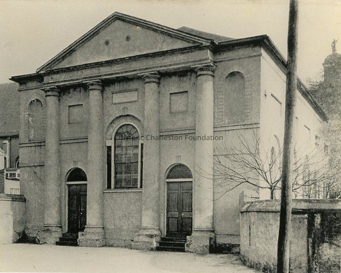 B&W photograph of of the front facade of the Charleston Orphan House Chapel.Collection