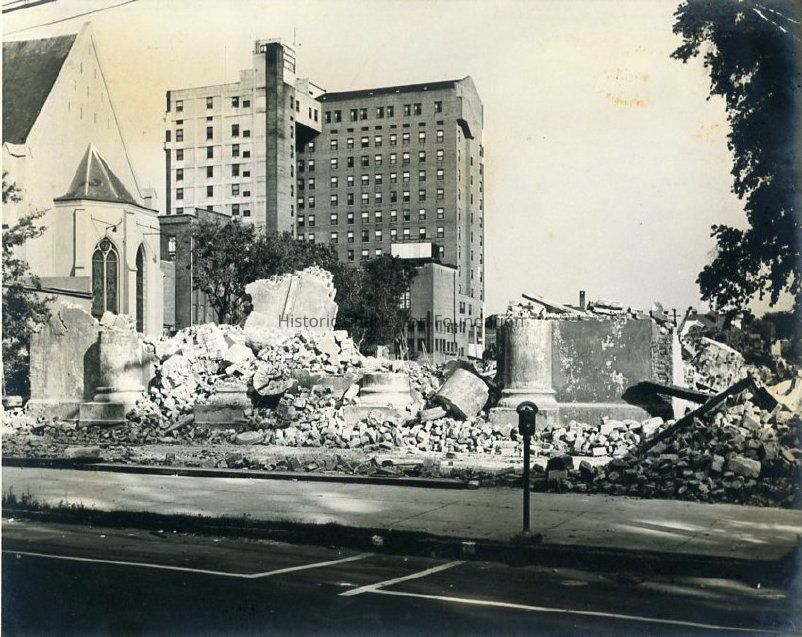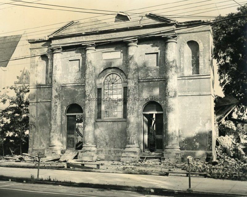 a: Front facade of the Charleston Orphan House Chapel, demolition in progress. Two copies of photograph in sleeve.