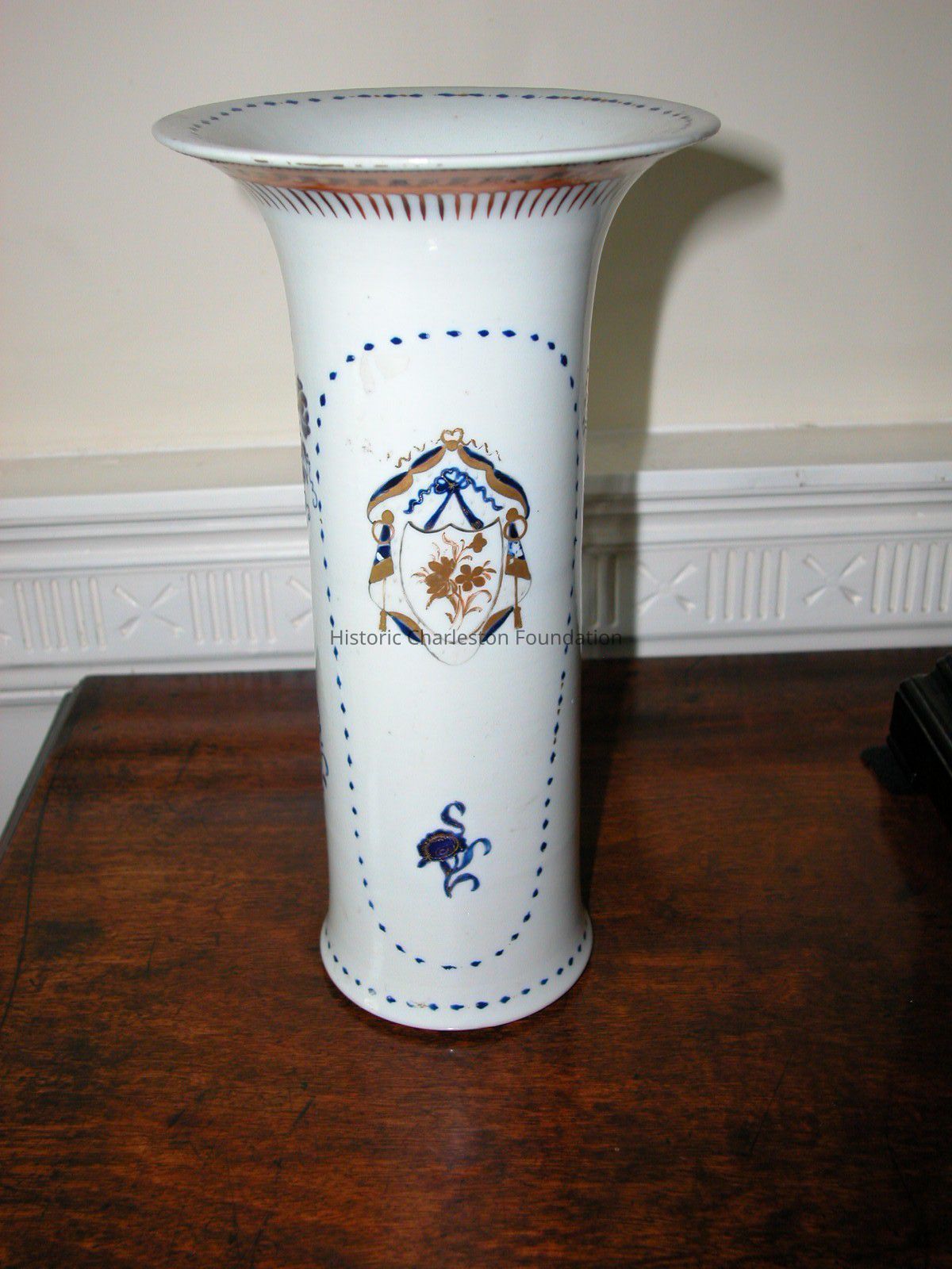 Pair of Circular Armorial Chinese Export Ware Beakers with Coat of Armorial Device on Both Sides of Long Oval of Blue Dots. C.1790Collection