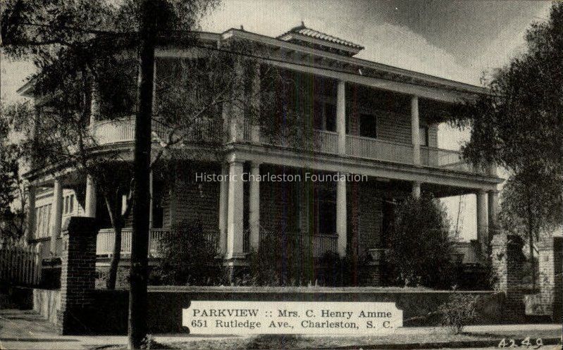 Per donor: Here is a nice shot of the house that used to be at 651 Rutledge Ave. It is the parking lot for the bank on the southwest corner of Rutledge and Moultrie today. In the 1930s the house was used as a tourist home, and its image was reproduced on a postcard I had never seen before until today. This image is from no later than 1938.Collection