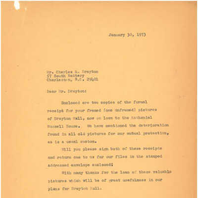 Notes: Surrogates for the original drawing, Object ID# 73.2.2, which was transferred/donated to Drayton Hall on December 5, 2012. High resolution scan available on DVD.