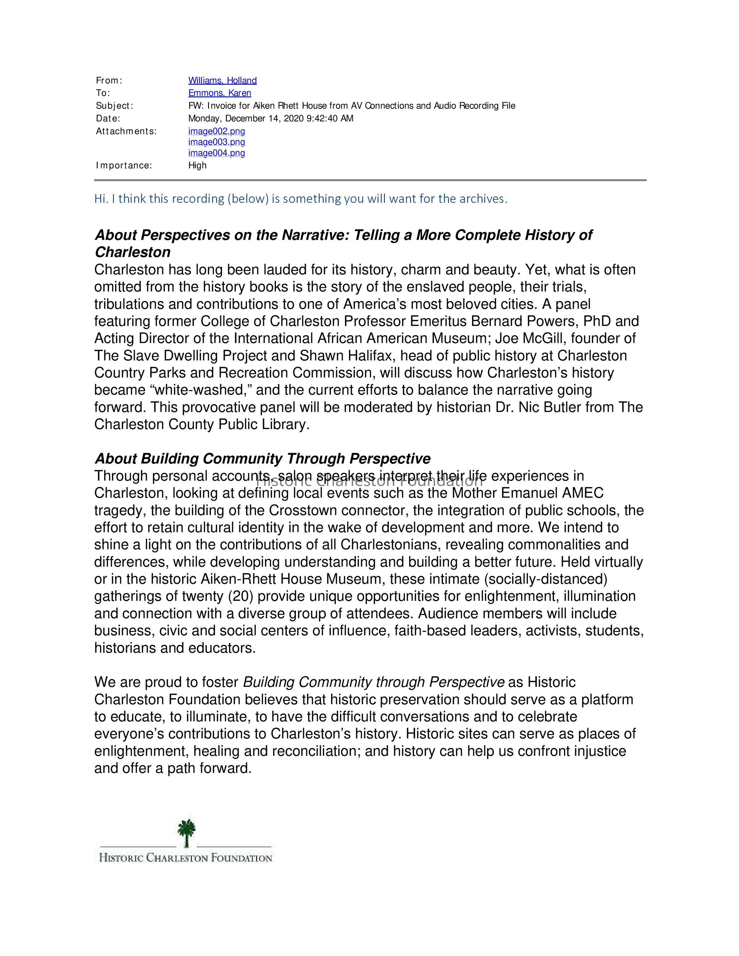 Charleston County Public Library. Presented at the Aiken-Rhett House on Dec. 10, 2020.