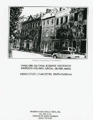 "Phase One Cultural Resource Assessment, Hollings Judicial Center Annex," created by Preservation Consultants, Inc., in August 1996.