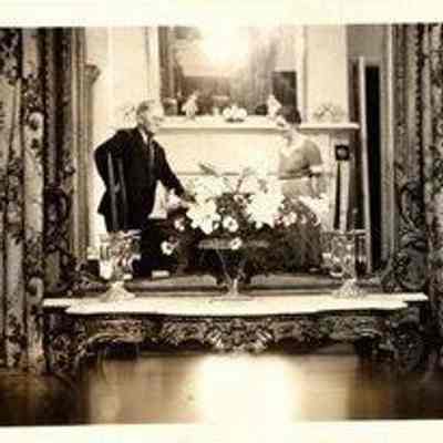 B: Reflection of man and woman in mirror over a mantel.Collection