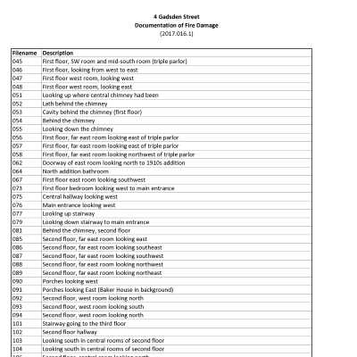 Photo Documentation of 4 Gadsden Street After the 2014 FireEntry/Object ID