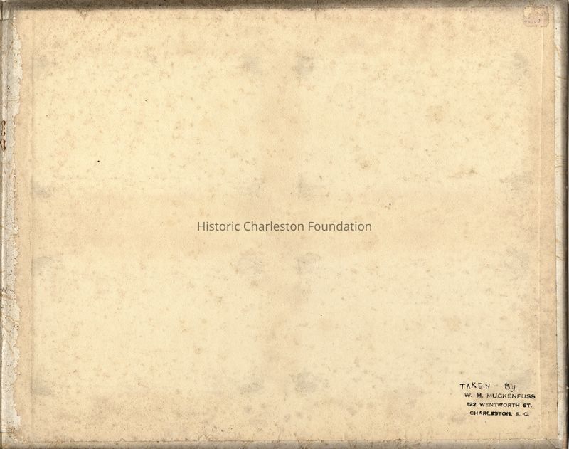 Stamped inscription on inside back cover: Taken by W. M. Muckenfuss, 122 Wentworth Street, Charleston, S.C.