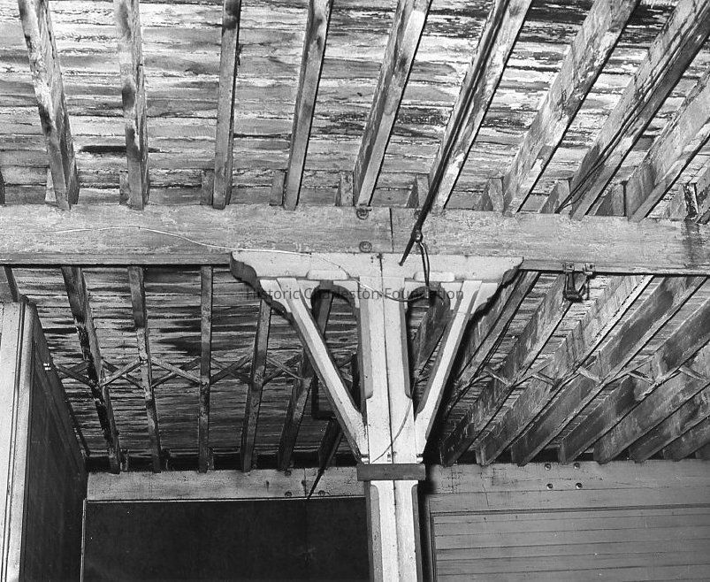 n: Interior view. Captioned "Column cap looking south inside two-story portion. 5/31/76."